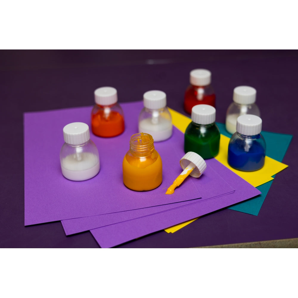 These versatile jars are great for the classroom! 12 empty jars with lids and application brushes each hold 57ml of glue or paint. Re-usable and the perfect size for small hands. Pack 12.