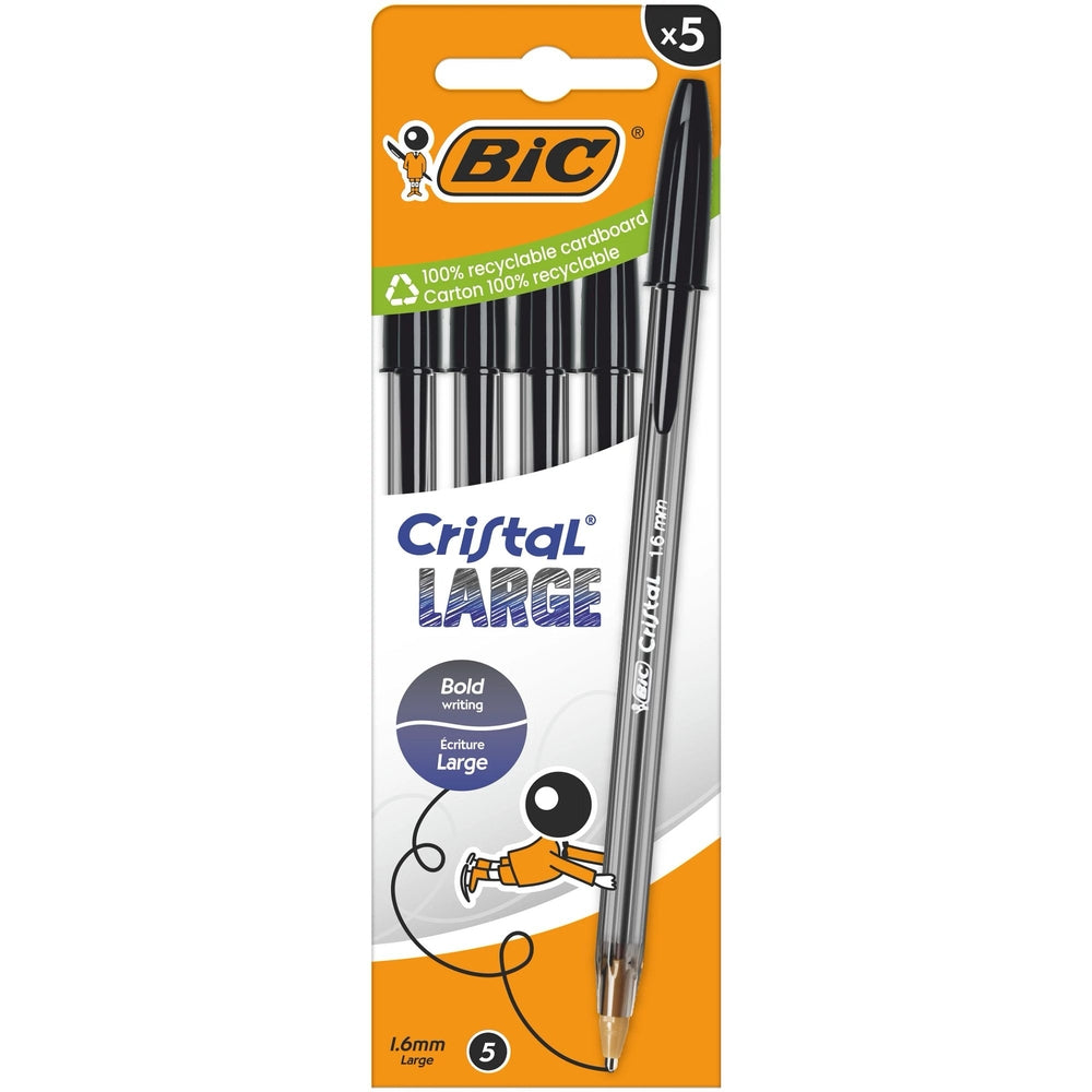 BIC Cristal Large Ballpoint Pens Black Pack of 5