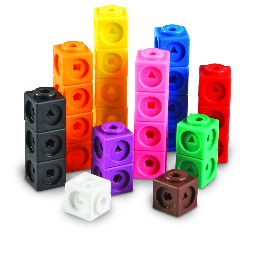 MathLink® Cubes are the award-winning linkable, stackable cubes that are great for maths learning in the classroom and at home. Use this counting block set to teach early numeracy skills including counting to 100, base 10, ordering numbers, place value, grouping, patterning, sorting, subitising, addition, subtraction, and graphing. When learning is done, the blocks become fun building toys and help children practise fine motor skills including hand strength, hand-eye coordination, motor planning, and spatial reasoning. The blocks are easy for little hands to use and click together on all sides and have geometric shape cutouts for fun patterning activities. This set has 10 eye-catching colours (yellow, pink, white, purple, green, black, red, brown, blue & orange) and help children with colour recognition. Set of 100 is ideal for ages 5+.