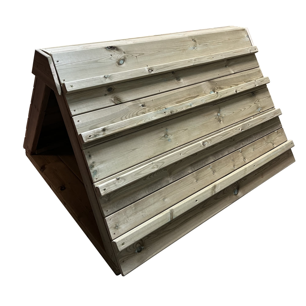 A medium sized Climbing Prism, suitable for a wider age range of children. A freestanding, climbing structure, with a different challenge presented on each side. Children can clamber up the ladder on one side, and climb the grips on the other side, increasing their physical ability and core strength as they play. Having a great width, this robust resource is suitable for two children to climb side by side at once making play more collaborative. H800 x W1450 x D1150mm. Designed for use by children aged 3 and above. Supplied with a 10 year manufacturer's guarantee against wood rot and insect damage. Delivered fully assembled.