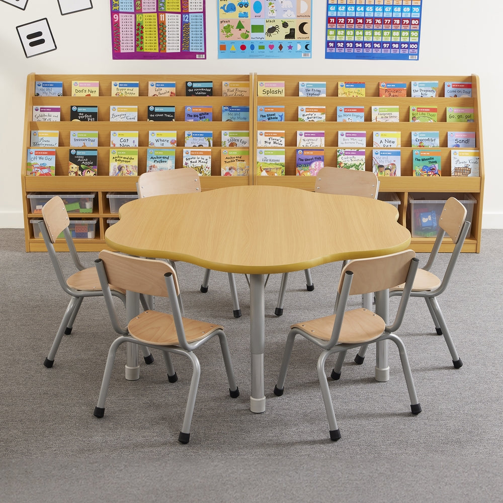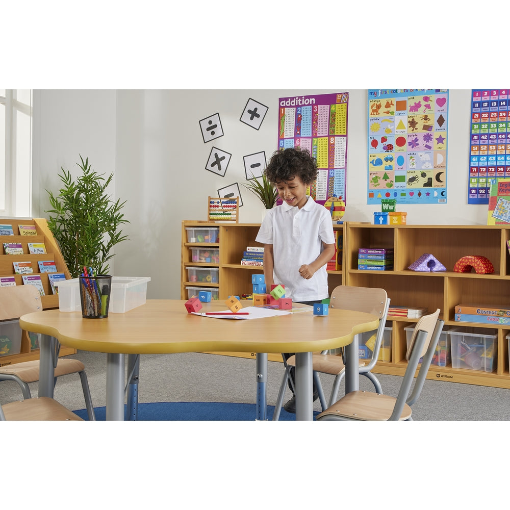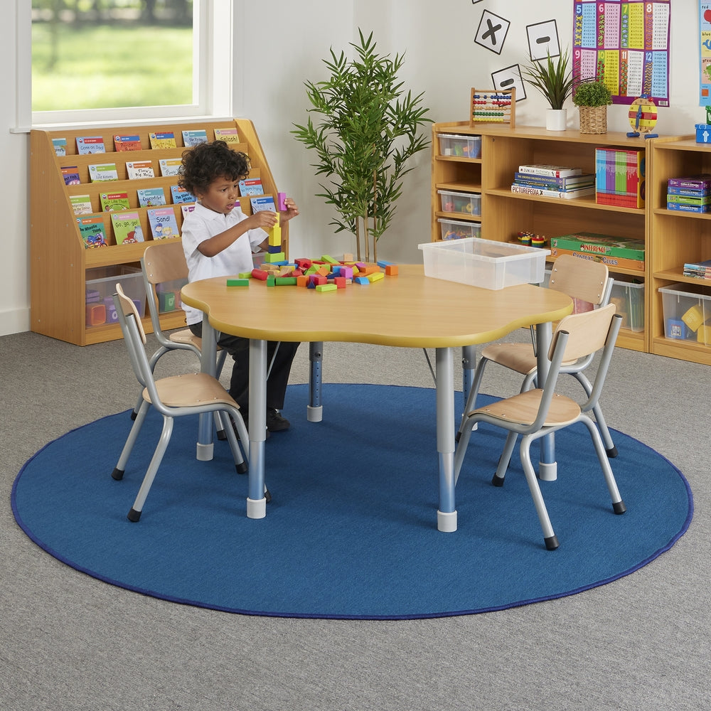The new Milan classroom furniture range is stylish, practical and designed to last. Finished to a high standard, featuring a combination of modern grey tones with natural wood colour it will create the perfect environment for children to flourish. These high quality versatile tables with height adjustable legs (390-620mm) make them the perfect choice for your classroom. Manufactured from sturdy 48mm tubular metal powder coated legs. 30mm thick natural maple wood top. Delivered flat packed for easy assembly. Complies with EN1729 Part 1 & 2. Supplied flat packed for easy assembly Height adjustable 370-620mm Dia 1200mm.