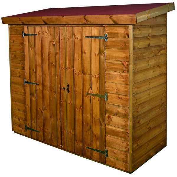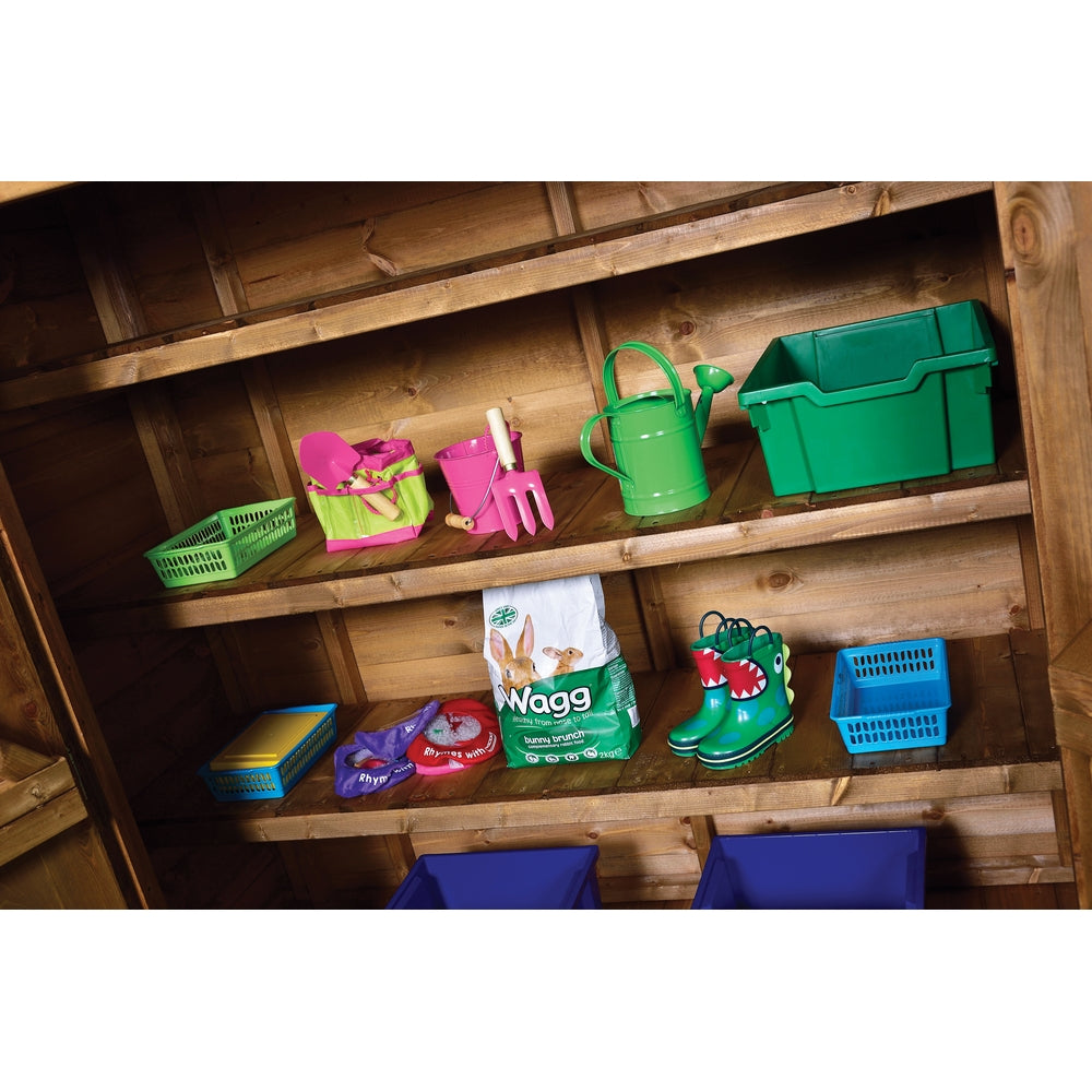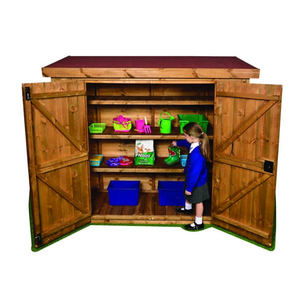 This tall, narrow storage shed has 3 shelf levels and is ideal for storing outdoor essentials, balls, tools, wellies, pots etc. All edges rounded for safety. Doors fitted with anti-trap strip to prevent finger injury.. Assembled or delivery only option. Internal shelves - W1950 x D470mm/ Foor to bottom shelf H410mm/Top Shelf H370mm. Middle 2 shelves H320mm. Manufactured from tongue and groove. Scandanavian redwood timber (FSC and ideal for outdoor use - treated) Age 3+. H1760 x W1830 x D910
