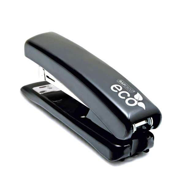 ECO full strip top-loading stapler, made with recycled plastic and all metal working parts. Up to 20 Sheet Capacity (80gsm). Uses 24 and 26/6mm staples. Throat Depth: 80mm L - 158mm x W - 34mm x H - 54mm