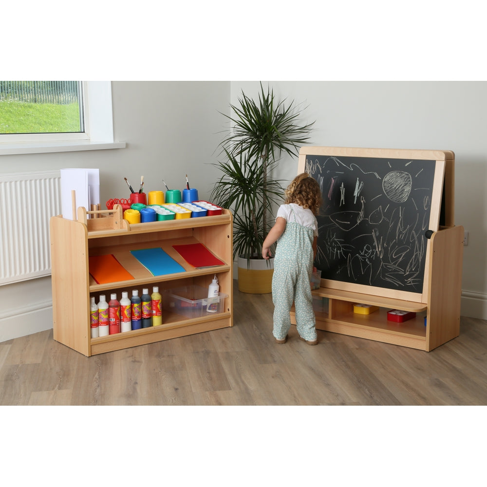 Supplied 12 assorted trays is part of the Room Scene range and when connected with other RS units it offers you to create boundaries in the classroom and nursery. Manufactured from 18mm beech faced MFC with ABS edging and solid beech. The item is supplied flat pack for easy self-assembly. H650 x W960 x D425mm.