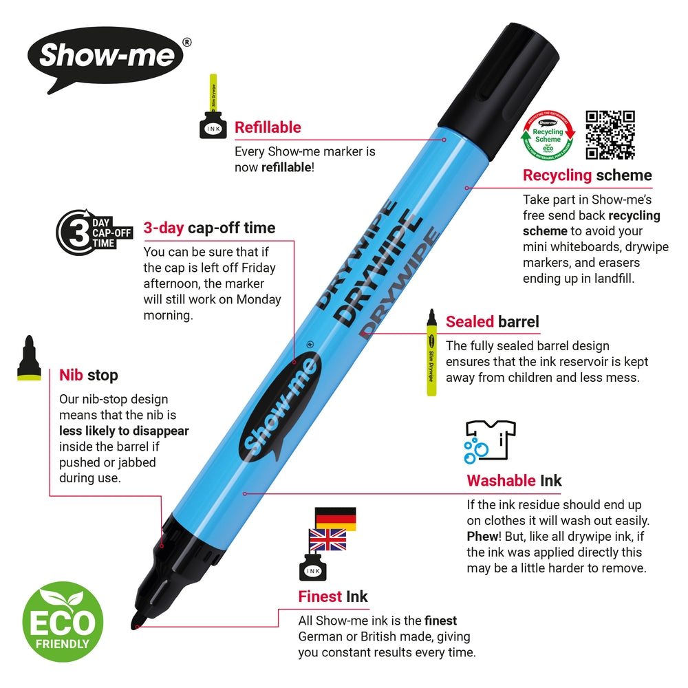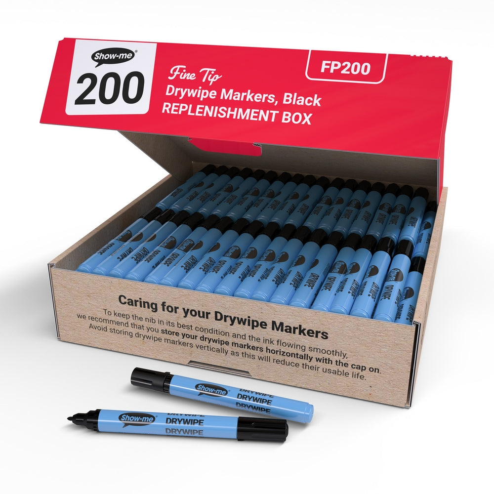 Show-Me Slim Drywipe Pens Fine Tip Black Pack of 200