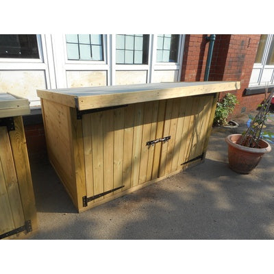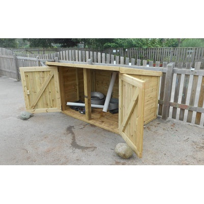 Designed to hold all manner of outdoor objects, this unit has a sealed roof to protect your equipment from the elements. Featuring two fully opening doors for easy access and bolts which can be secured with a padlock (not included). Made from Scandinavian Redwood Timber that is guaranteed for 10 years against rot and insect infestation. Supplied fully assembled. L2000 x W1200 x H1200mm.